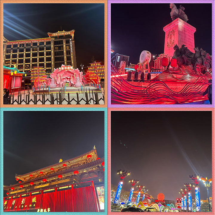 After a tour of the Big Wild Goose Pagoda, we came to the lively Datang Never Night City, where the Tang style elements as the main line, built the Big Wild Goose Pagoda North square, Xuanzang Square, Zhenguan Square, Chuangling New Times Square, Xi 'an Concert Hall, Shaanxi Grand Theatre, Xi 'an Art Museum, Qujiang Pacific Film City and other four cultural venues. The five cultural sculptures, such as the Buddha culture of the Tang Dynasty, the English music of the Tang Dynasty, the governance of Zhenguan, the Empress of Wu, and the prosperous era of Kaiyuan, were crowded that night, allowing us to feel and experience the Tang culture of Xi 'an.